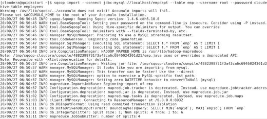 Importing a table from MySQL to Hive’s default database. The below command will help in copying the “emp” table and data from MySQL to Hive’s user database (dbTest) as the “employee” table.