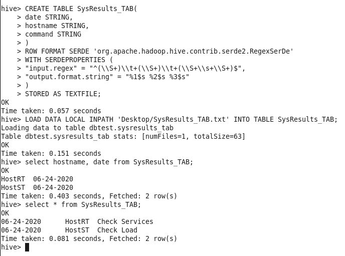 LOAD DATA LOCAL INPATH ‘Desktop/SysResults_TAB.txt’ INTO TABLE SysResults_TAB;